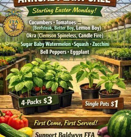 The Baldwyn Future Farmers of America will hold its annual plant sale starting Easter Monday. The event aims to support students while providing gardening plants to the community.