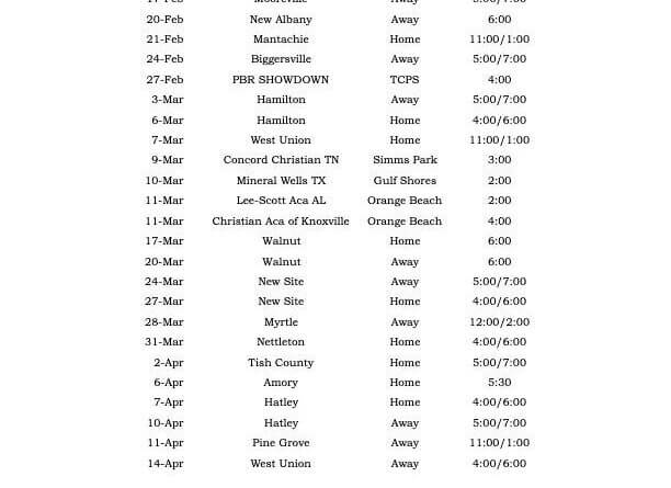 The Baldwyn School District has posted the schedules for its 2026 spring sports season. The district’s teams include baseball, softball, archery, tennis, and track.