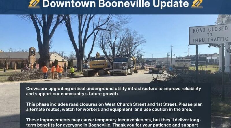 The improvements are expected to cause temporary inconveniences but aim to deliver long-term benefits for the community, officials said. City leaders thanked residents for their patience and support as they work to build a stronger, more resilient downtown Booneville.