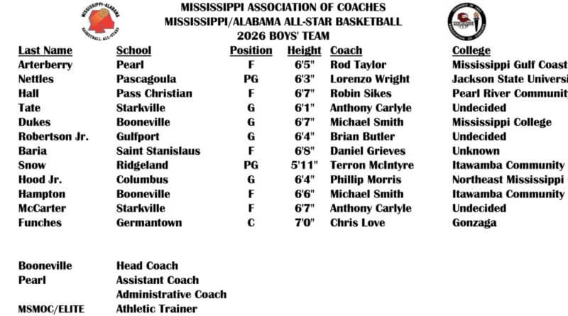 Booneville High School will be well represented at the Mississippi/Alabama Basketball All-Star Game, according to a post from the Mississippi Association of Coaches.