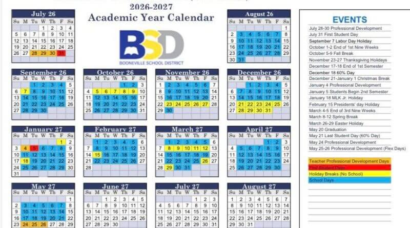 The Booneville School District has released its official calendar for the 2026-2027 school year. The calendar is now available on the districtβs website, allowing families, students, and staff to plan ahead.