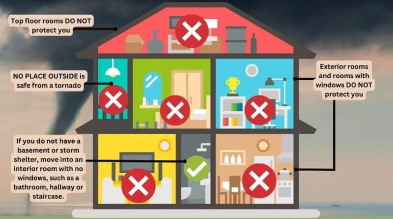 Officials advise residents to identify safe places in their homes and practice emergency plans before storms arrive. Having a designated shelter area can help protect families from potential tornadoes.