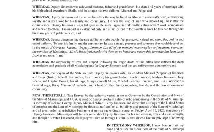 Mississippi is mourning the loss of Deputy Jimerson, who is regarded as a hero by law enforcement and the community. The state expressed its support and gratitude for his service.