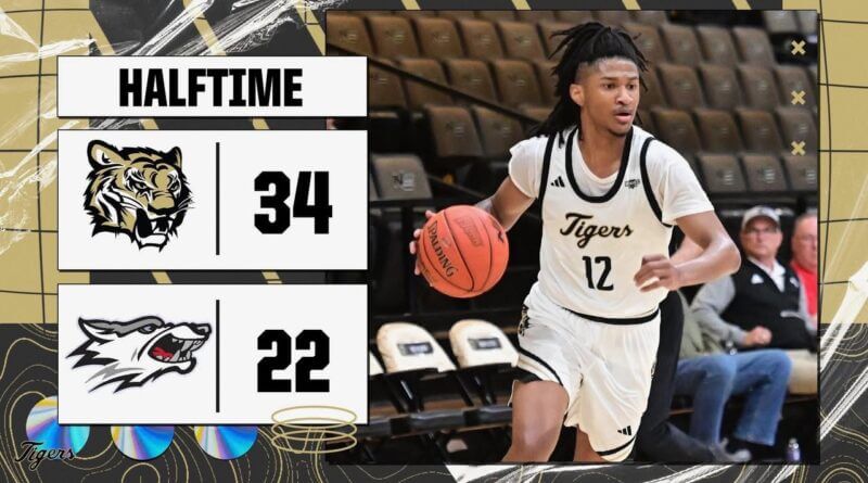 Northeast Mississippi Community College’s men’s basketball team led Co-Lin 34-22 at halftime, thanks to strong defensive play. The Tigers limited the Wolves to less than 40% shooting from the field in the opening half.