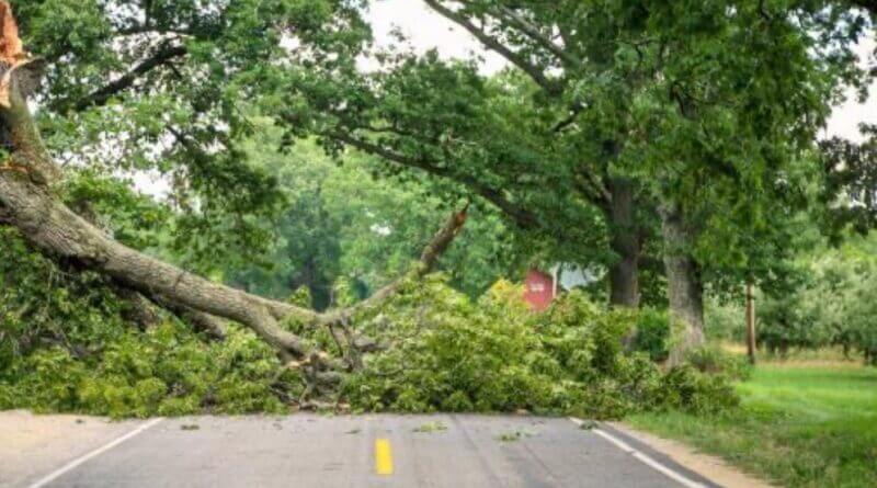 Tree blocks W route on College Street in front of McMillan Funeral Home